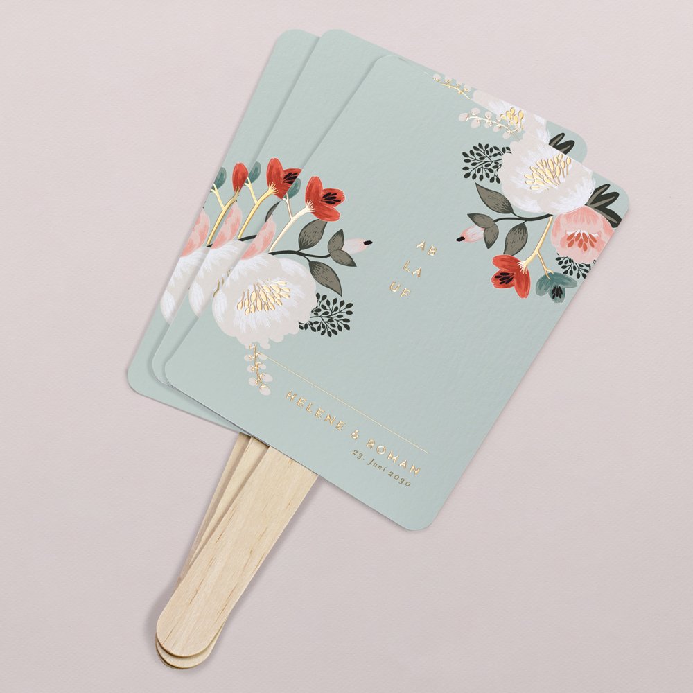 Gestalten Sie die Hochzeitsfächer mit dem Programmablauf Ihrer Feier, um Ihre Gäste auf dem Laufenden zu halten. Der Programmfächer informiert Ihre Gäste über die einzelnen Programmpunkte und sorgt für einen reibungslosen Ablauf Ihrer Hochzeitsfeier. Zudem können sich Ihre Gäste an heißen Tagen mit dem Fächer etwas frische Luft zufächeln.