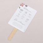 Gestalten Sie die Hochzeitsfächer mit dem Programmablauf Ihrer Feier, um Ihre Gäste auf dem Laufenden zu halten. Der Programmfächer informiert Ihre Gäste über die einzelnen Programmpunkte und sorgt für einen reibungslosen Ablauf Ihrer Hochzeitsfeier. Zudem können sich Ihre Gäste an heißen Tagen mit dem Fächer etwas frische Luft zufächeln.