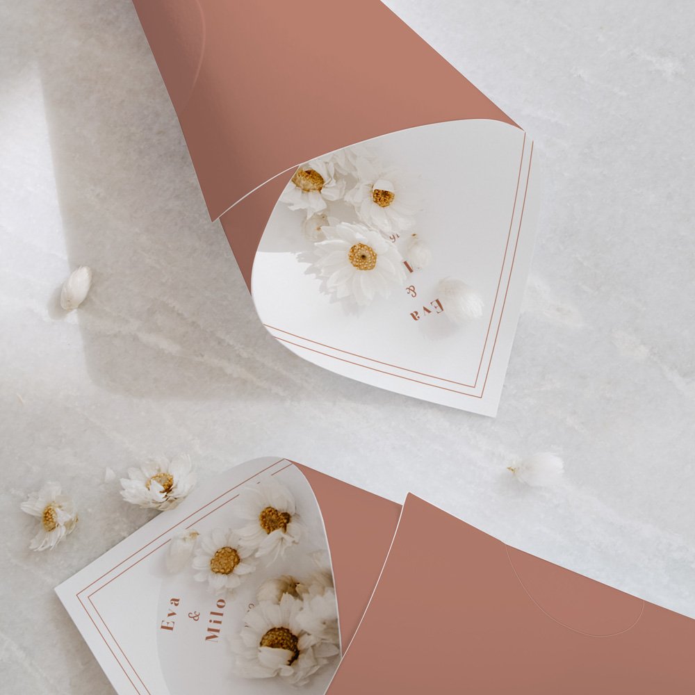 Das perfekte Accessoire für den perfekten Moment. Diese kleinen Spitztüten im passenden Design zu Ihren Einladungskarten können mit Ihren Namen bedruckt und mit Blütenblättern, Reis oder Konfetti gefüllt werden.