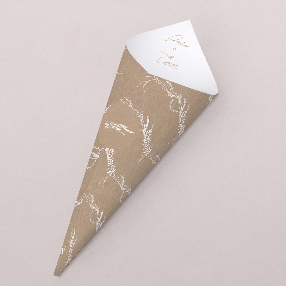 Das perfekte Accessoire für den perfekten Moment. Diese kleinen Spitztüten im passenden Design zu Ihren Einladungskarten können mit Ihren Namen bedruckt und mit Blütenblättern, Reis oder Konfetti gefüllt werden.