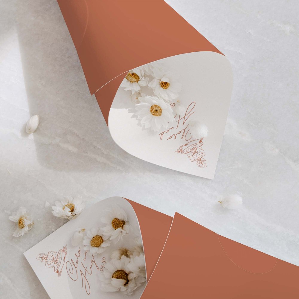 Das perfekte Accessoire für den perfekten Moment. Diese kleinen Spitztüten im passenden Design zu Ihren Einladungskarten können mit Ihren Namen bedruckt und mit Blütenblättern, Reis oder Konfetti gefüllt werden.