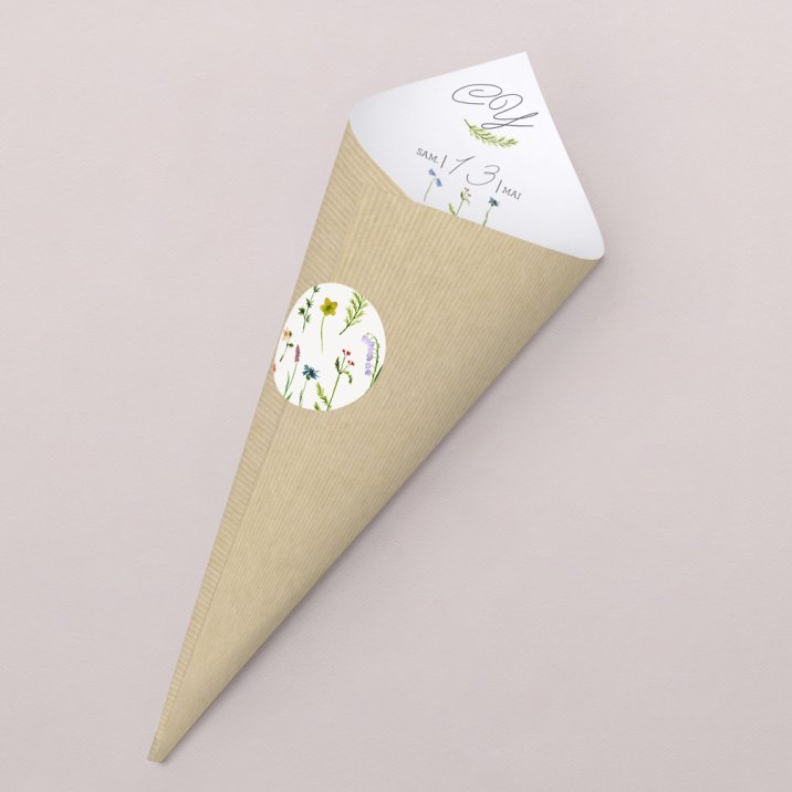 Das perfekte Accessoire für den perfekten Moment. Diese kleinen Spitztüten im passenden Design zu Ihren Einladungskarten können mit Ihren Namen bedruckt und mit Blütenblättern, Reis oder Konfetti gefüllt werden.