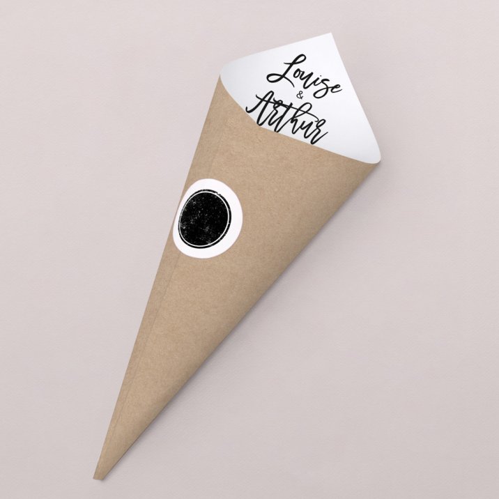 Das perfekte Accessoire für den perfekten Moment. Diese kleinen Spitztüten im passenden Design zu Ihren Einladungskarten können mit Ihren Namen bedruckt und mit Blütenblättern, Reis oder Konfetti gefüllt werden.