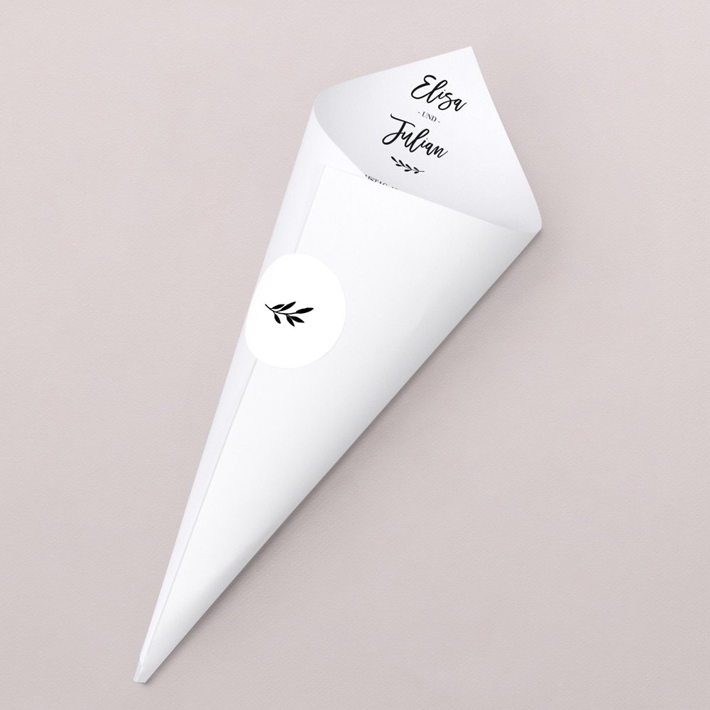 Das perfekte Accessoire für den perfekten Moment. Diese kleinen Spitztüten im passenden Design zu Ihren Einladungskarten können mit Ihren Namen bedruckt und mit Blütenblättern, Reis oder Konfetti gefüllt werden.