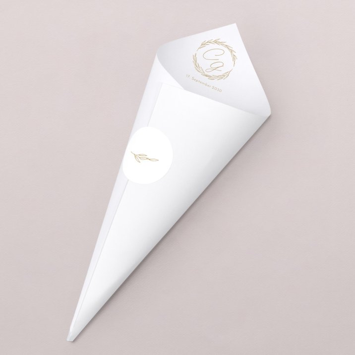 Das perfekte Accessoire für den perfekten Moment. Diese kleinen Spitztüten im passenden Design zu Ihren Einladungskarten können mit Ihren Namen bedruckt und mit Blütenblättern, Reis oder Konfetti gefüllt werden.