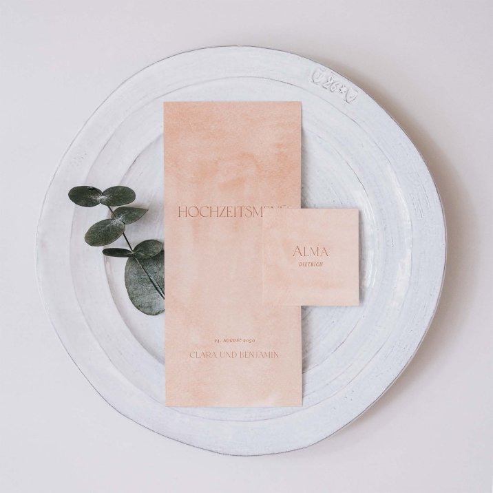 Die Vorfreude auf kulinarische Highlights macht jedes Fest noch besonderer! Lassen Sie Ihre Gäste schon vor dem ersten Gang wissen, welche Köstlichkeiten sie erwarten – von der Vorspeise über das Hauptgericht bis zum Dessert, begleitet von einer erlesenen Auswahl an Getränken. Gestalten Sie eine stilvolle Menükarte oder Getränkekarte, die perfekt mit Ihrer Einladung und Tischdekoration harmoniert. So informieren Sie nicht nur über die Speisen und Getränke, sondern setzen zugleich ein dekoratives Highlight. Unser Tipp: Platzieren Sie die Karten direkt an jedem Sitzplatz oder zentral auf den Tischen, um Ihre Festtafel stilvoll abzurunden.