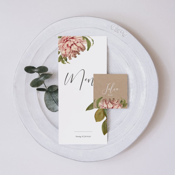 Die Vorfreude auf kulinarische Highlights macht jedes Fest noch besonderer! Lassen Sie Ihre Gäste schon vor dem ersten Gang wissen, welche Köstlichkeiten sie erwarten – von der Vorspeise über das Hauptgericht bis zum Dessert, begleitet von einer erlesenen Auswahl an Getränken. Gestalten Sie eine stilvolle Menükarte oder Getränkekarte, die perfekt mit Ihrer Einladung und Tischdekoration harmoniert. So informieren Sie nicht nur über die Speisen und Getränke, sondern setzen zugleich ein dekoratives Highlight. Unser Tipp: Platzieren Sie die Karten direkt an jedem Sitzplatz oder zentral auf den Tischen, um Ihre Festtafel stilvoll abzurunden.
