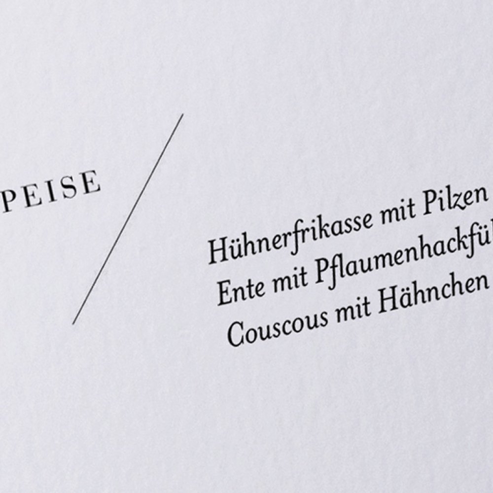 Die Vorfreude auf kulinarische Highlights macht jedes Fest noch besonderer! Lassen Sie Ihre Gäste schon vor dem ersten Gang wissen, welche Köstlichkeiten sie erwarten – von der Vorspeise über das Hauptgericht bis zum Dessert, begleitet von einer erlesenen Auswahl an Getränken. Gestalten Sie eine stilvolle Menükarte oder Getränkekarte, die perfekt mit Ihrer Einladung und Tischdekoration harmoniert. So informieren Sie nicht nur über die Speisen und Getränke, sondern setzen zugleich ein dekoratives Highlight. Unser Tipp: Platzieren Sie die Karten direkt an jedem Sitzplatz oder zentral auf den Tischen, um Ihre Festtafel stilvoll abzurunden.
