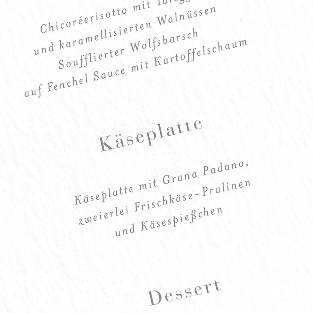 Die Vorfreude auf kulinarische Highlights macht jedes Fest noch besonderer! Lassen Sie Ihre Gäste schon vor dem ersten Gang wissen, welche Köstlichkeiten sie erwarten – von der Vorspeise über das Hauptgericht bis zum Dessert, begleitet von einer erlesenen Auswahl an Getränken. Gestalten Sie eine stilvolle Menükarte oder Getränkekarte, die perfekt mit Ihrer Einladung und Tischdekoration harmoniert. So informieren Sie nicht nur über die Speisen und Getränke, sondern setzen zugleich ein dekoratives Highlight. Unser Tipp: Platzieren Sie die Karten direkt an jedem Sitzplatz oder zentral auf den Tischen, um Ihre Festtafel stilvoll abzurunden.