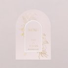 Mit seinem eleganten Bogenschnitt ist dieses Hochzeitsmenü, passend zu Ihren Einladungskarten, eine wunderbare Ergänzung Ihrer Tischdekoration. Präsentieren Sie es auf einem eleganten Kartenhalter aus Holz (optional erhältlich), legen Sie eine Karte auf jeden Teller oder schmücken Sie sie mit einer hübschen Schleife...
