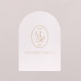 Mit seinem eleganten Bogenschnitt ist dieses Hochzeitsmenü, passend zu Ihren Einladungskarten, eine wunderbare Ergänzung Ihrer Tischdekoration. Präsentieren Sie es auf einem eleganten Kartenhalter aus Holz (optional erhältlich), legen Sie eine Karte auf jeden Teller oder schmücken Sie sie mit einer hübschen Schleife...