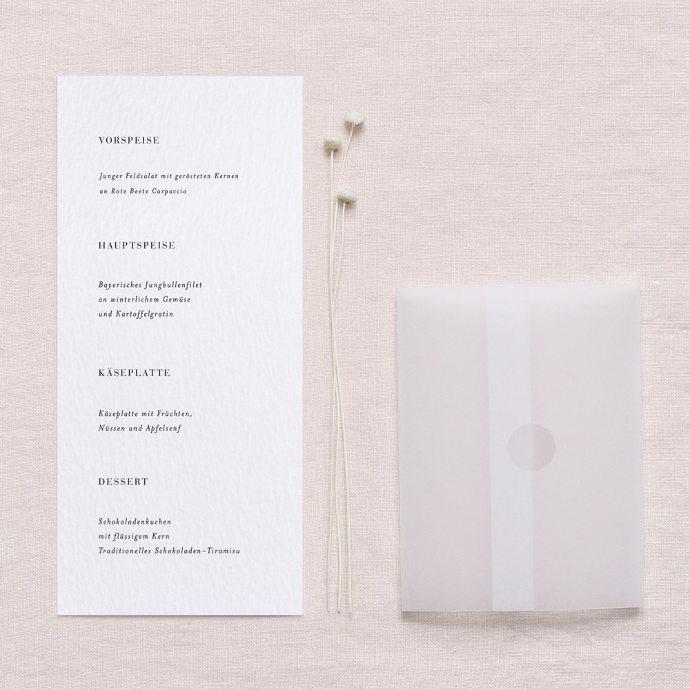 Die elegante Menükarte ist mit einer transparenten Banderole versehen, die Ihren Hochzeitsstil vervollständigt.