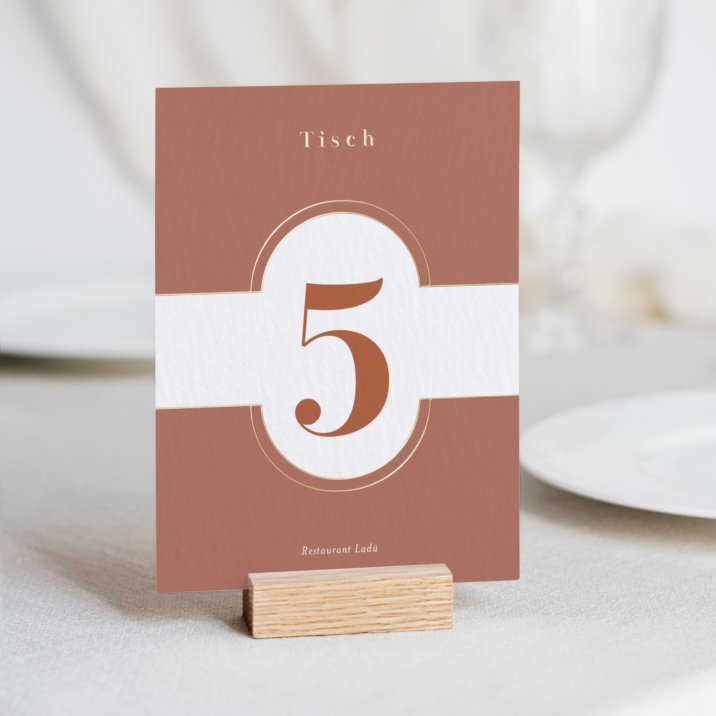 Platzieren Sie die Tischnummern in der Tischmitte, so dass Ihre Gäste die Nummer gut sehen können. Ergänzend zur Tischordnung, die Ihren Gästen verrät, welchen Tisch sie suchen müssen, helfen die Tischnummern diesen auch schnell und unkompliziert zu finden.