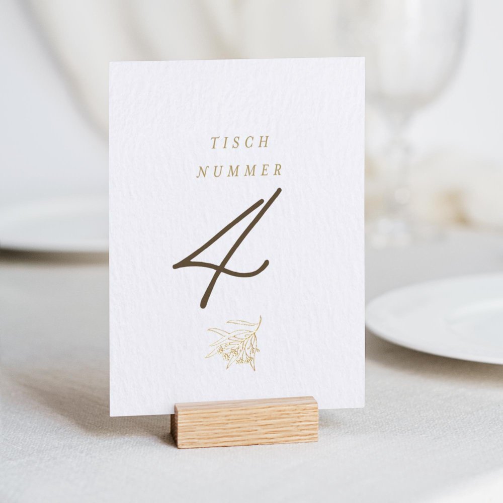 Tipp: Um Ihre Tischdeko harmonisch zu gestalten, nutzen Sie einen schönen Halter für Ihre Tischnummern oder platzieren Sie sie in der Blumendeko in der Tischmitte.