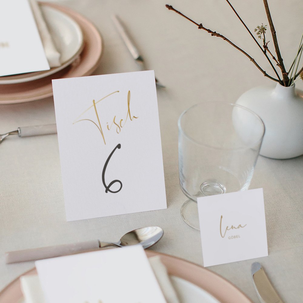 Platzieren Sie die Tischnummern in der Tischmitte, so dass Ihre Gäste die Nummer gut sehen können. Ergänzend zur Tischordnung, die Ihren Gästen verrät, welchen Tisch sie suchen müssen, helfen die Tischnummern diesen auch schnell und unkompliziert zu finden.