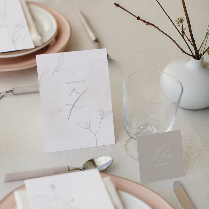 Tipp: Um Ihre Tischdeko harmonisch zu gestalten, nutzen Sie einen schönen Halter für Ihre Tischnummern oder platzieren Sie sie in der Blumendeko in der Tischmitte.