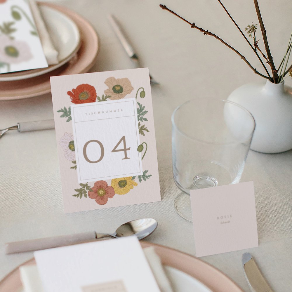 Tipp: Um Ihre Tischdeko harmonisch zu gestalten, nutzen Sie einen schönen Halter für Ihre Tischnummern oder platzieren Sie sie in der Blumendeko in der Tischmitte.