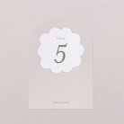 Passend zur Einladungskarte wird diese Tischnummer Ihre Dekoration am großen Tag perfekt ergänzen. Präsentieren Sie sie auf einem eleganten Kartenhalter aus Holz (optional erhältlich), binden Sie sie mit einer Schnur um eine mit Trockenblumen gefüllte Glasvase... lassen Sie Ihrer Fantasie freien Lauf!