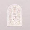 Passend zur Einladungskarte wird diese Tischnummer Ihre Dekoration am großen Tag perfekt ergänzen. Präsentieren Sie sie auf einem eleganten Kartenhalter aus Holz (optional erhältlich), binden Sie sie mit einer Schnur um eine mit Trockenblumen gefüllte Glasvase... lassen Sie Ihrer Fantasie freien Lauf!
