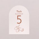 Passend zur Einladungskarte wird diese Tischnummer Ihre Dekoration am großen Tag perfekt ergänzen. Präsentieren Sie sie auf einem eleganten Kartenhalter aus Holz (optional erhältlich), binden Sie sie mit einer Schnur um eine mit Trockenblumen gefüllte Glasvase... lassen Sie Ihrer Fantasie freien Lauf!