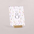 Passend zur Einladungskarte wird diese Tischnummer Ihre Dekoration am großen Tag perfekt ergänzen. Präsentieren Sie sie auf einem eleganten Kartenhalter aus Holz (optional erhältlich), binden Sie sie mit einer Schnur um eine mit Trockenblumen gefüllte Glasvase... lassen Sie Ihrer Fantasie freien Lauf!