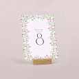 Passend zur Einladungskarte wird diese Tischnummer Ihre Dekoration am großen Tag perfekt ergänzen. Präsentieren Sie sie auf einem eleganten Kartenhalter aus Holz (optional erhältlich), binden Sie sie mit einer Schnur um eine mit Trockenblumen gefüllte Glasvase... lassen Sie Ihrer Fantasie freien Lauf!