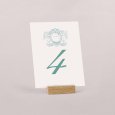 Passend zur Einladungskarte wird diese Tischnummer Ihre Dekoration am großen Tag perfekt ergänzen. Präsentieren Sie sie auf einem eleganten Kartenhalter aus Holz (optional erhältlich), binden Sie sie mit einer Schnur um eine mit Trockenblumen gefüllte Glasvase... lassen Sie Ihrer Fantasie freien Lauf!