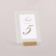 Passend zur Einladungskarte wird diese Tischnummer Ihre Dekoration am großen Tag perfekt ergänzen. Präsentieren Sie sie auf einem eleganten Kartenhalter aus Holz (optional erhältlich), binden Sie sie mit einer Schnur um eine mit Trockenblumen gefüllte Glasvase... lassen Sie Ihrer Fantasie freien Lauf!
