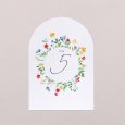 Passend zur Einladungskarte wird diese Tischnummer Ihre Dekoration am großen Tag perfekt ergänzen. Präsentieren Sie sie auf einem eleganten Kartenhalter aus Holz (optional erhältlich), binden Sie sie mit einer Schnur um eine mit Trockenblumen gefüllte Glasvase... lassen Sie Ihrer Fantasie freien Lauf!