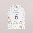 Passend zur Einladungskarte wird diese Tischnummer Ihre Dekoration am großen Tag perfekt ergänzen. Präsentieren Sie sie auf einem eleganten Kartenhalter aus Holz (optional erhältlich), binden Sie sie mit einer Schnur um eine mit Trockenblumen gefüllte Glasvase... lassen Sie Ihrer Fantasie freien Lauf!