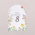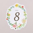 Passend zur Einladungskarte wird diese Tischnummer Ihre Dekoration am großen Tag perfekt ergänzen. Präsentieren Sie sie auf einem eleganten Kartenhalter aus Holz (optional erhältlich), binden Sie sie mit einer Schnur um eine mit Trockenblumen gefüllte Glasvase... lassen Sie Ihrer Fantasie freien Lauf!