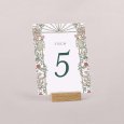 Passend zur Einladungskarte wird diese Tischnummer Ihre Dekoration am großen Tag perfekt ergänzen. Präsentieren Sie sie auf einem eleganten Kartenhalter aus Holz (optional erhältlich), binden Sie sie mit einer Schnur um eine mit Trockenblumen gefüllte Glasvase... lassen Sie Ihrer Fantasie freien Lauf!
