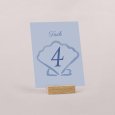 Passend zur Einladungskarte wird diese Tischnummer Ihre Dekoration am großen Tag perfekt ergänzen. Präsentieren Sie sie auf einem eleganten Kartenhalter aus Holz (optional erhältlich), binden Sie sie mit einer Schnur um eine mit Trockenblumen gefüllte Glasvase... lassen Sie Ihrer Fantasie freien Lauf!