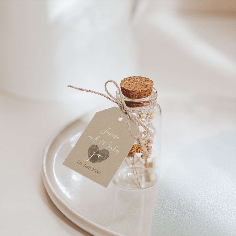 Mit einer praktischen Öse versehen, können die Anhänger mit einem hübschen Deko Band am Geschenk befestigt werden. Dieses Detail wird Ihren Gästen sicherlich ein Lächeln ins Gesicht zaubern.