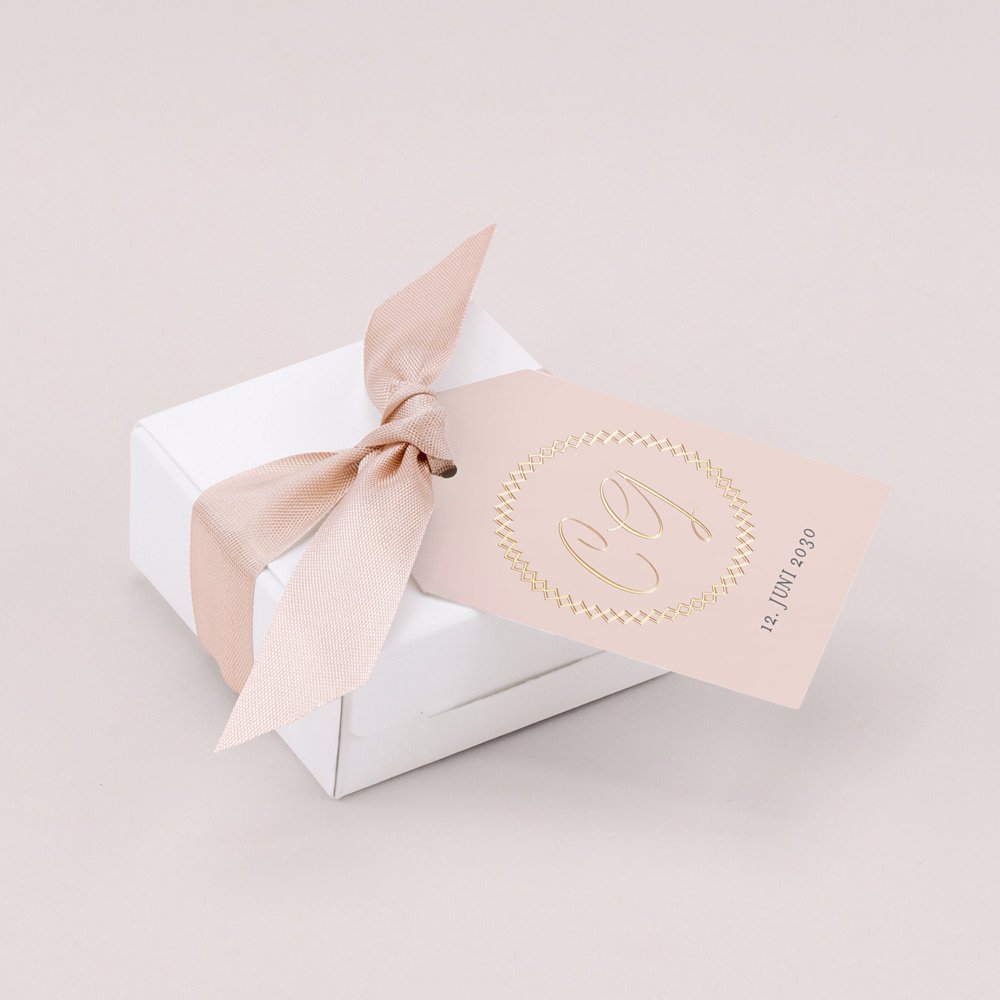 Mit einer praktischen Öse versehen, können die Anhänger mit einem hübschen Deko Band am Geschenk befestigt werden. Dieses Detail wird Ihren Gästen sicherlich ein Lächeln ins Gesicht zaubern.