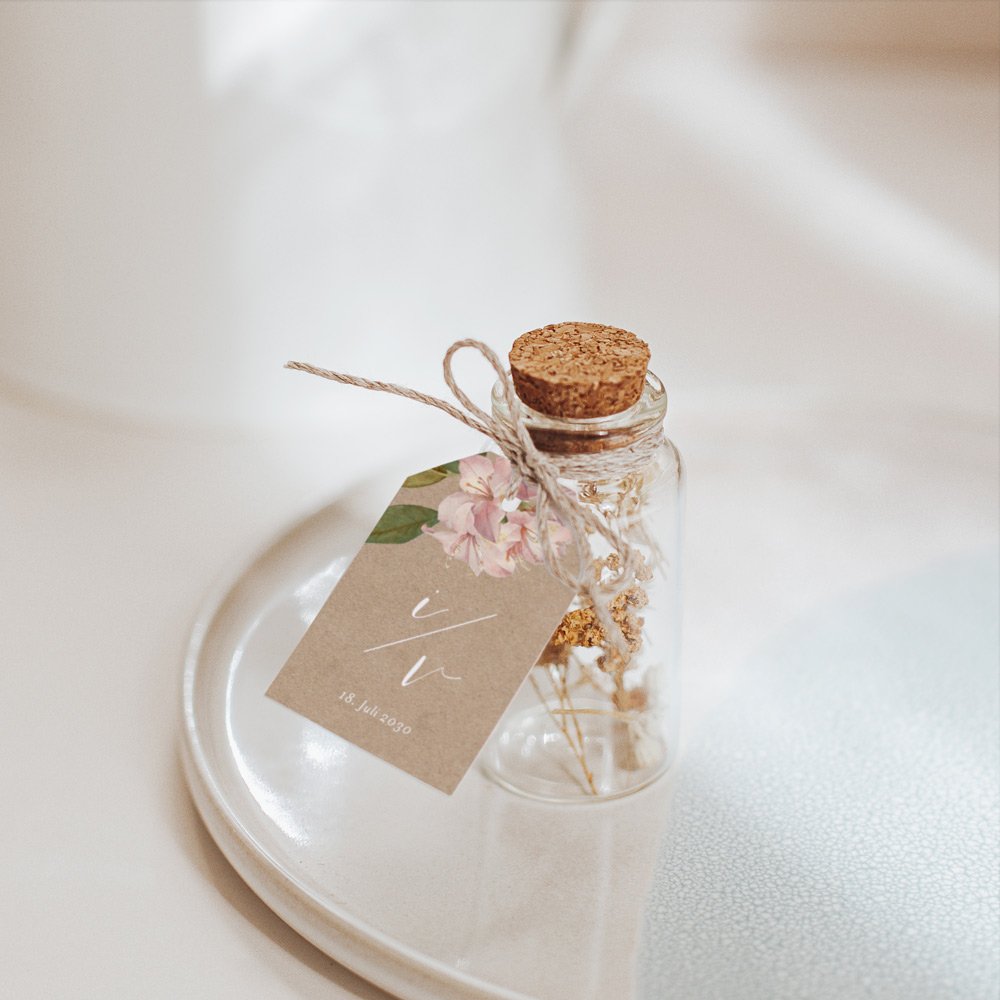 Mit einer praktischen Öse versehen, können die Anhänger mit einem hübschen Deko Band am Geschenk befestigt werden. Dieses Detail wird Ihren Gästen sicherlich ein Lächeln ins Gesicht zaubern.