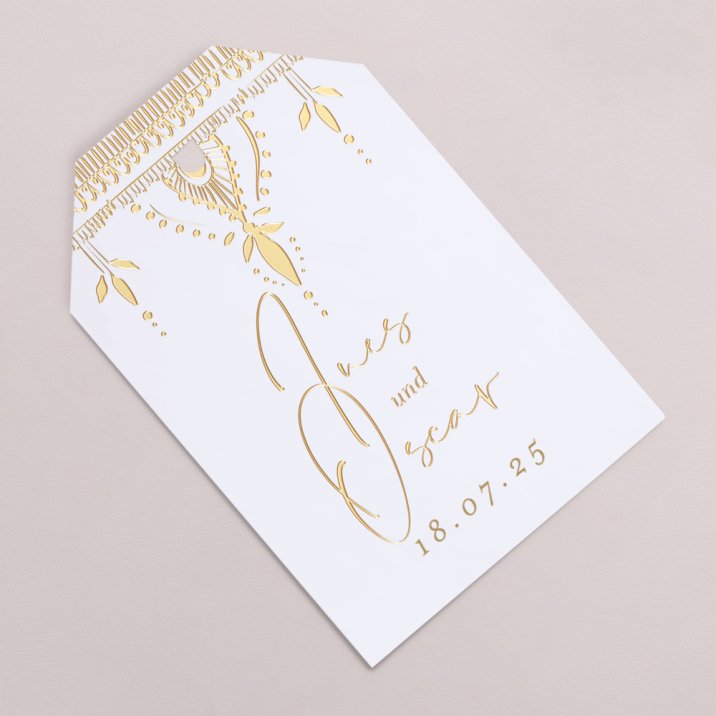 Mit einer praktischen Öse versehen, können die Anhänger mit einem hübschen Deko Band am Geschenk befestigt werden. Dieses Detail wird Ihren Gästen sicherlich ein Lächeln ins Gesicht zaubern.
