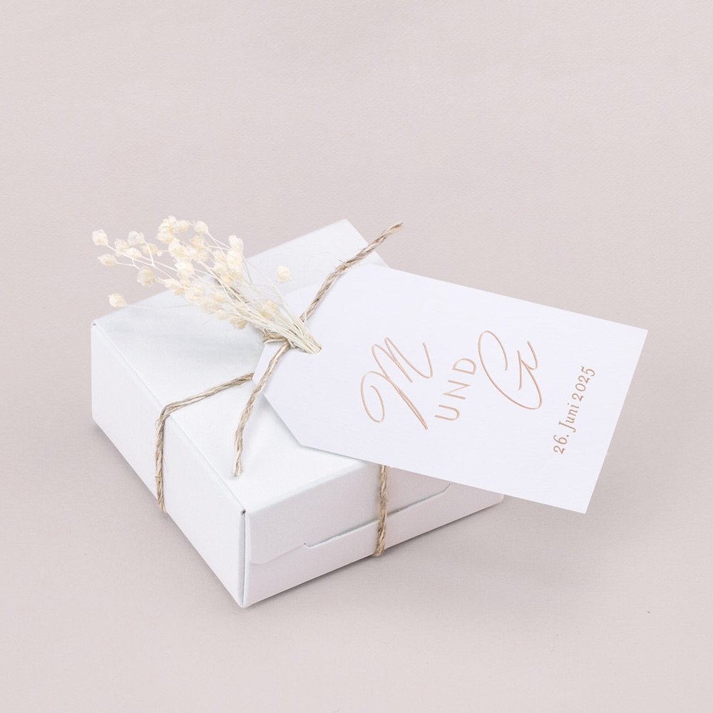 Dekorieren Sie Ihre Gastgeschenke für Ihre Hochzeitsgäste mit diesen personalisierbaren Geschenkanhängern. Die hübschen Anhänger eignen sich hervorragend, um kleinen Präsenten, Geschenkboxen und anderen Aufmerksamkeiten das gewisse Etwas zu verleihen.