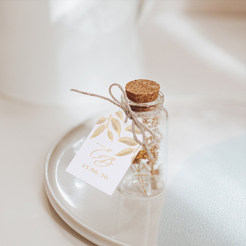 Mit einer praktischen Öse versehen, können die Anhänger mit einem hübschen Deko Band am Geschenk befestigt werden. Dieses Detail wird Ihren Gästen sicherlich ein Lächeln ins Gesicht zaubern.