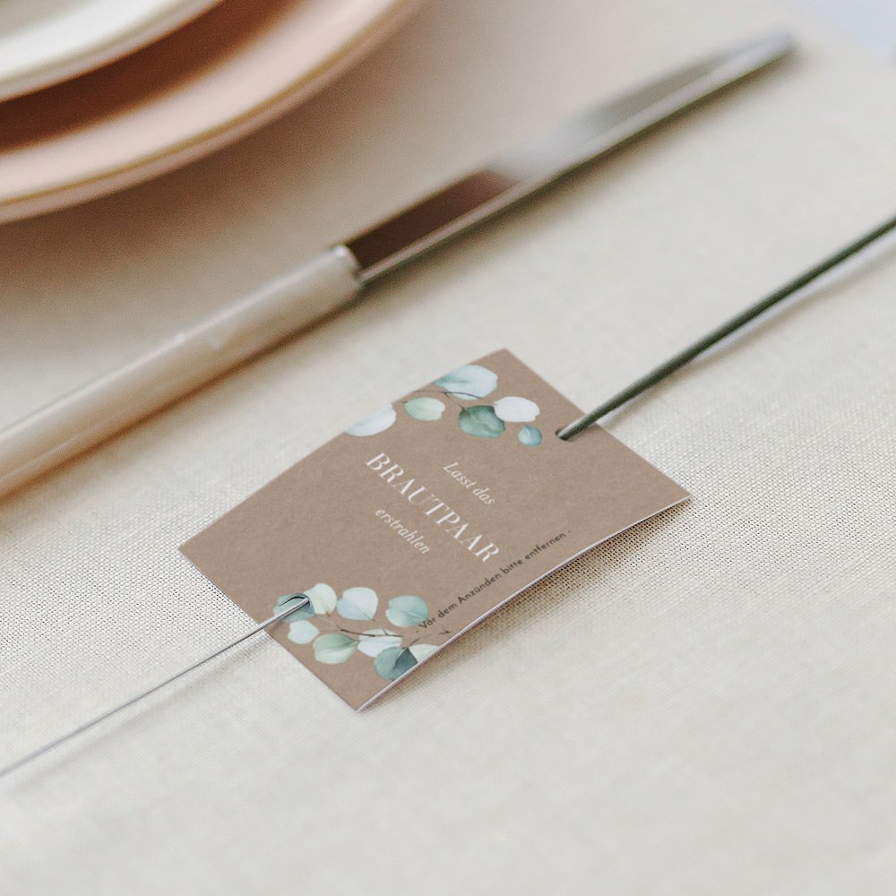 Unser Tipp: Legen Sie die Wunderkerzen mit diesen Etiketten am jeweiligen Platz des Gastes auf den Hochzeitstischen aus!