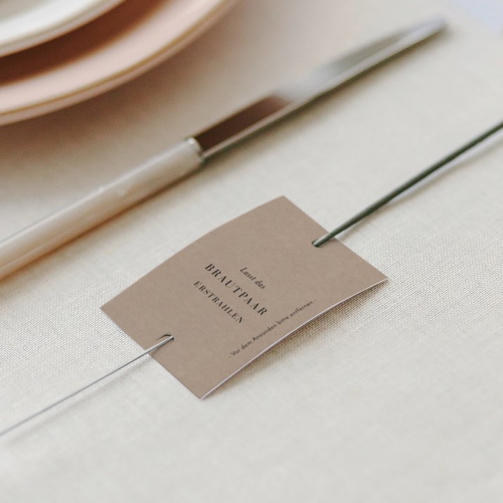 Unser Tipp: Legen Sie die Wunderkerzen mit diesen Etiketten am jeweiligen Platz des Gastes auf den Hochzeitstischen aus!