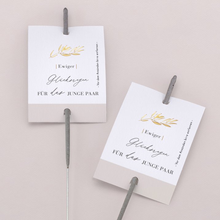 Lassen Sie die Funken sprühen! Schmücken Sie Ihre Wunderkerzen mit diesen personalisierbaren Etiketten und laden Sie Ihre Gäste zu einem ganz besonderen Moment ein: gemeinsam die Wunderkerzen anzünden, wenn das Brautpaar den Festsaal betritt, zum Brauttanz oder beim Anschneiden der Hochzeitstorte.