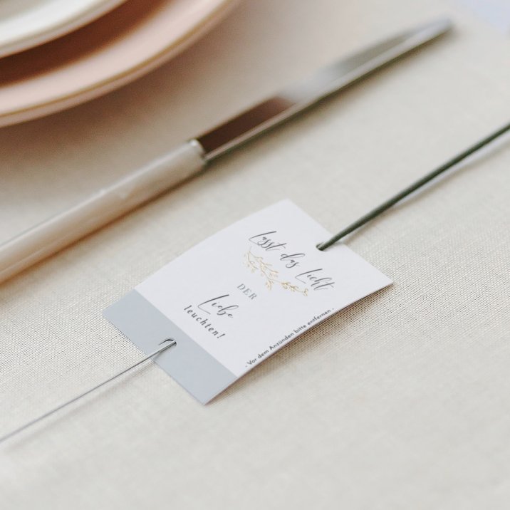 Unser Tipp: Legen Sie die Wunderkerzen mit diesen Etiketten am jeweiligen Platz des Gastes auf den Hochzeitstischen aus!