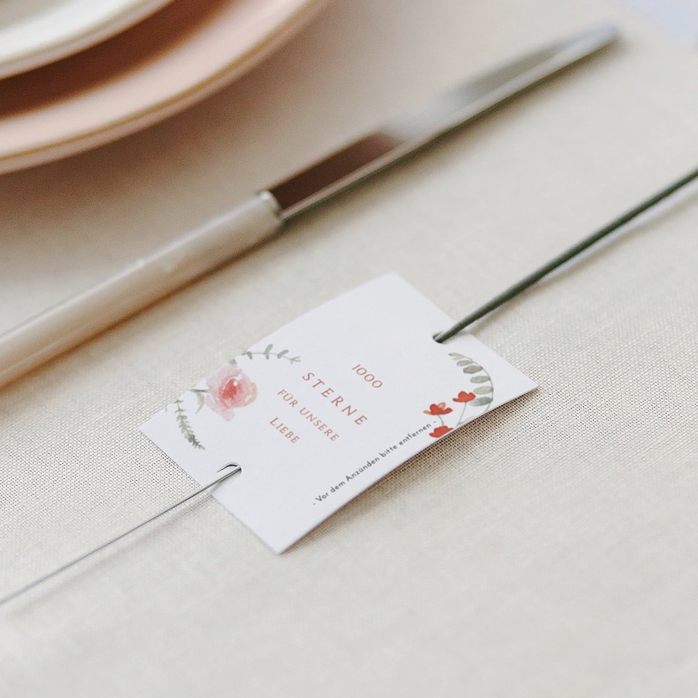 Unser Tipp: Legen Sie die Wunderkerzen mit diesen Etiketten am jeweiligen Platz des Gastes auf den Hochzeitstischen aus!