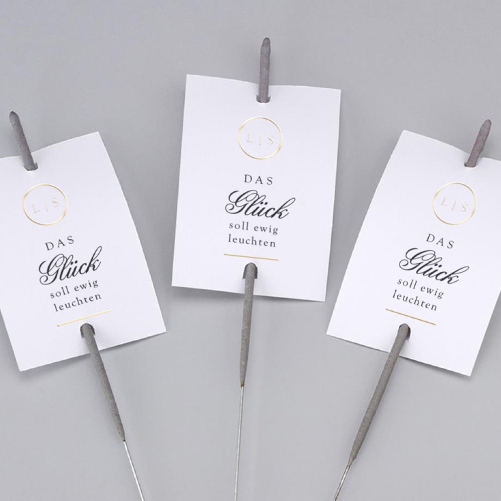 Unser Tipp: Legen Sie die Wunderkerzen mit diesen Etiketten am jeweiligen Platz des Gastes auf den Hochzeitstischen aus!
