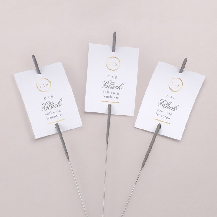 Lassen Sie die Funken sprühen! Schmücken Sie Ihre Wunderkerzen mit diesen personalisierbaren Etiketten und laden Sie Ihre Gäste zu einem ganz besonderen Moment ein: gemeinsam die Wunderkerzen anzünden, wenn das Brautpaar den Festsaal betritt, zum Brauttanz oder beim Anschneiden der Hochzeitstorte.