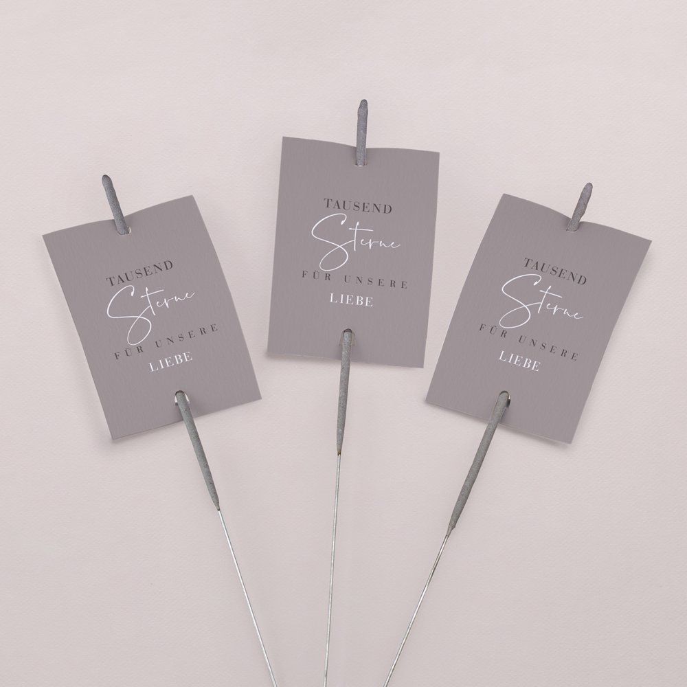 Lassen Sie die Funken sprühen! Schmücken Sie Ihre Wunderkerzen mit diesen personalisierbaren Etiketten und laden Sie Ihre Gäste zu einem ganz besonderen Moment ein: gemeinsam die Wunderkerzen anzünden, wenn das Brautpaar den Festsaal betritt, zum Brauttanz oder beim Anschneiden der Hochzeitstorte.