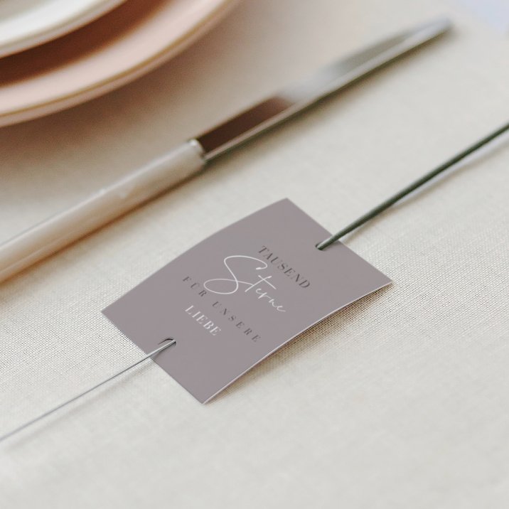 Unser Tipp: Legen Sie die Wunderkerzen mit diesen Etiketten am jeweiligen Platz des Gastes auf den Hochzeitstischen aus!