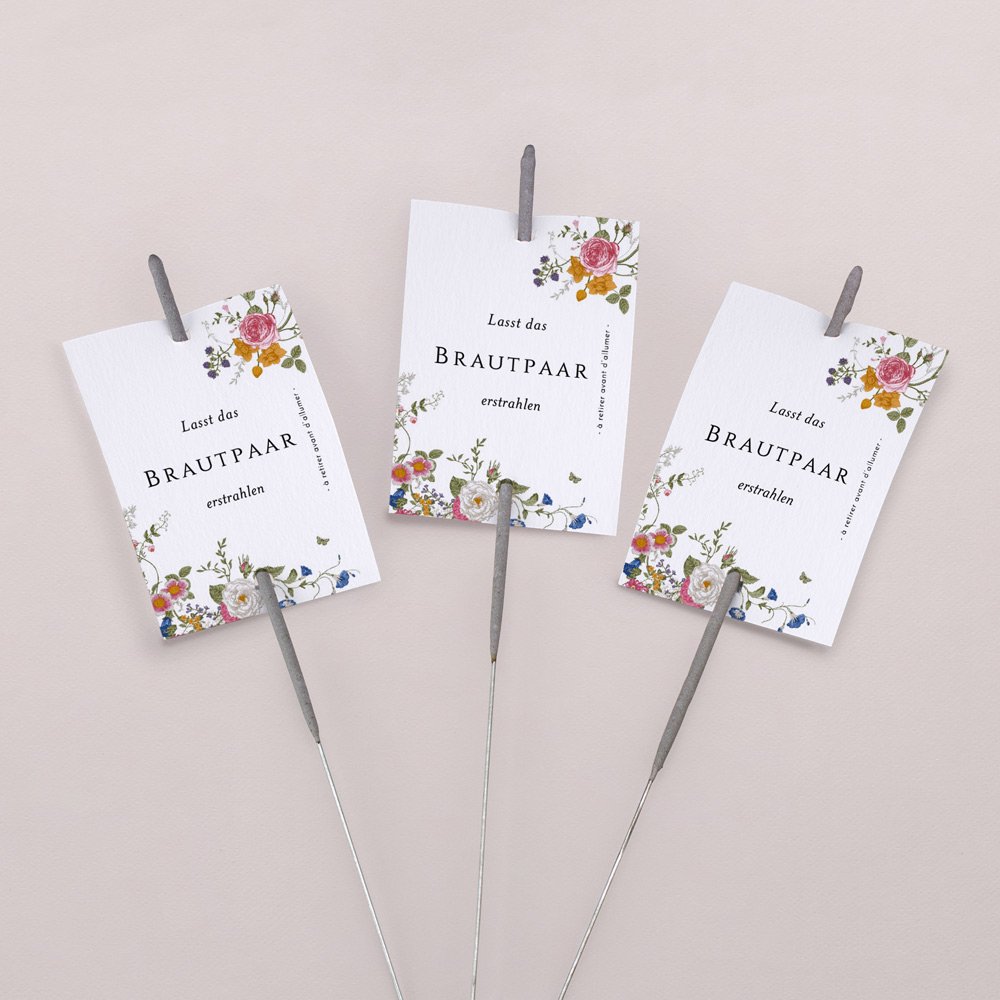 Lassen Sie die Funken sprühen! Schmücken Sie Ihre Wunderkerzen mit diesen personalisierbaren Etiketten und laden Sie Ihre Gäste zu einem ganz besonderen Moment ein: gemeinsam die Wunderkerzen anzünden, wenn das Brautpaar den Festsaal betritt, zum Brauttanz oder beim Anschneiden der Hochzeitstorte.