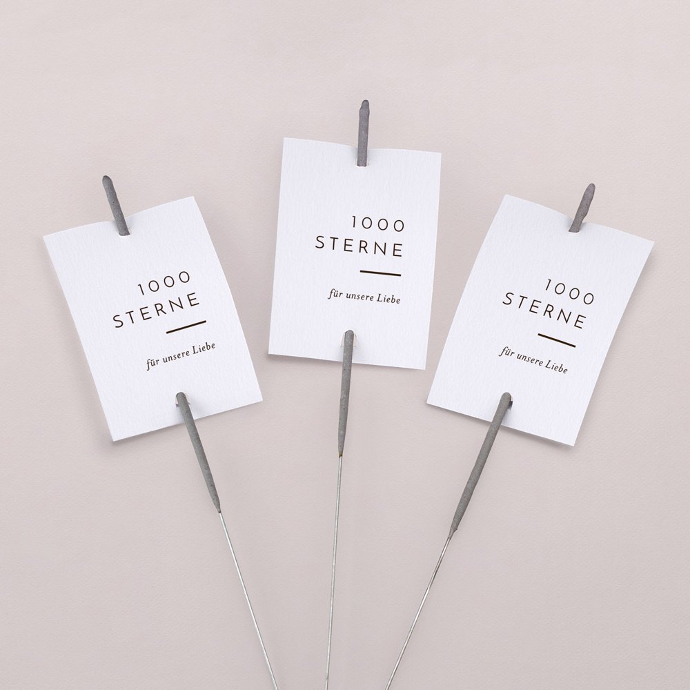 Unser Tipp: Legen Sie die Wunderkerzen mit diesen Etiketten am jeweiligen Platz des Gastes auf den Hochzeitstischen aus!